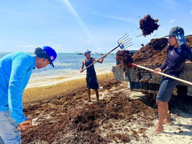 The San Pedro crew is working with the National Sargassum task force and other departments to ensure that using sargassum as a landfill does not affect the community’s well-being. During intense cleanup campaigns, everything is done to reduce smell and leaching from sargassum. Any person interested in joining the cleaning crew on the island can visit the SPTC offices during regular working hours, Monday to Friday, 8AM to 5PM.