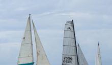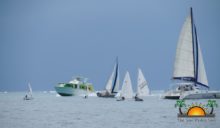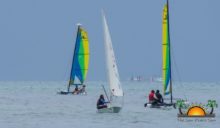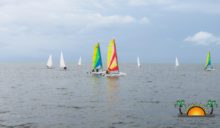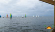 This year, although murky, the skippers tried to find and catch the mere puffs of wind that rose and died from varying directions along the course. The day was so calm that it took a few frustrated skippers more than 10 minutes just to cross the start line. As the day progressed, an approaching squall from the northeast arrived and with it, winds up to 25 knots. The course circuit that had taken a Hobie Wave over an hour to complete on its first lap, took only 14 minutes to complete the second and third laps. With the favorable weather conditions now on hand, racing was back to normality.