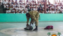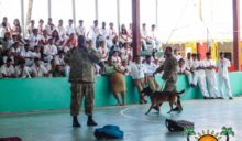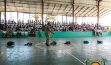 After Hamilton’s speech, he led a demonstration by placing eight backpacks in the center of the auditorium. He then placed a bag, which contained marijuana, in one of them, and called his other colleague, Sergeant Barington Bracket forward with his Belgium Malinois canine friend. In less than thirty seconds, the dog sniffed each bag, and sat down when he sensed illegal drugs. As the gathering cheered, Hamilton invited four students to do a “stress-free” dance, which led to much laughter and camaraderie.