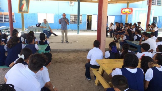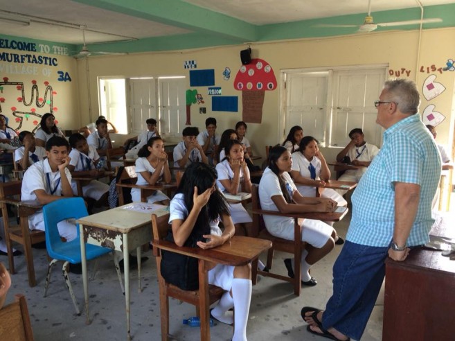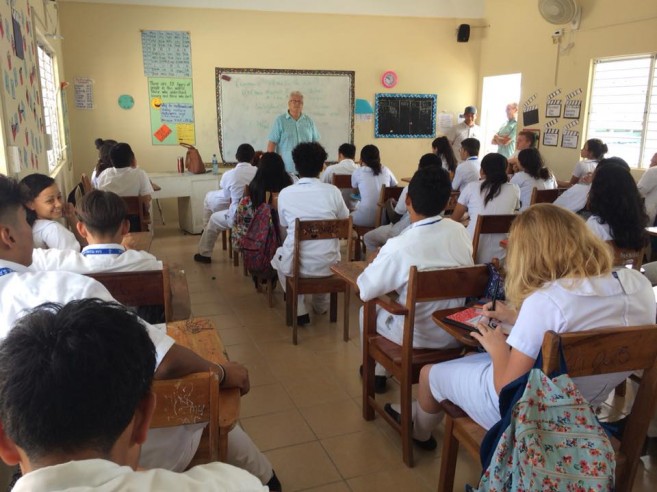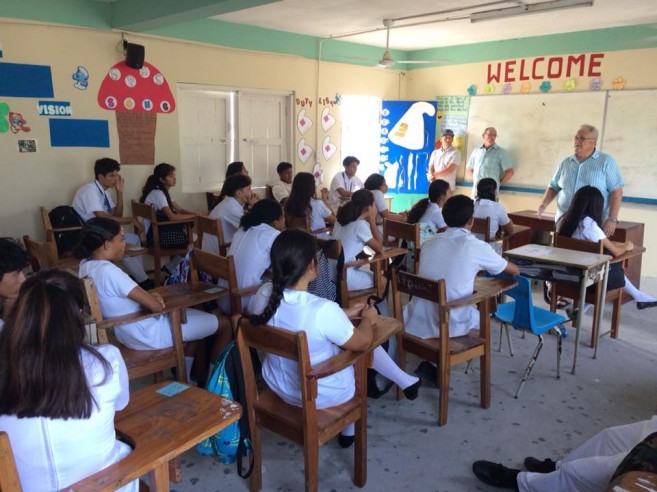 The team spoke at San Pedro Roman Catholic School, San Pedro High School, San Pedro Adult Continuing Education, Holy Cross Anglican School, and San Pedro Junior College. They also visited other schools on the mainland, including Eden Seventh Day Adventist School, Belmopan Baptist Adult Education, Belmopan Comprehensive HS Assembly, Independence High School, Georgetown Technical High School, Julian Cho Technical High School, and Toledo Community College.