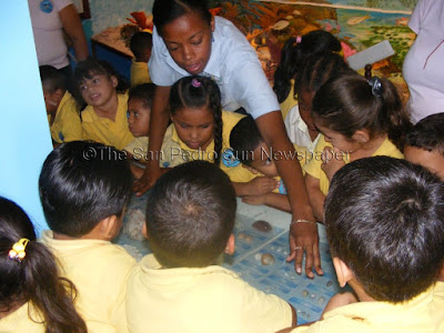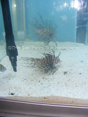 On Sunday, two Searious Adventures guides: Horace Bladen & Wayne Cumberbatch, caught yet another Lion Fish. This one was found at Shark Ray Alley at around 11:00 am. Reports from the boys indicate that it is even bigger than the one caught at Xaman Ek. The Hol Chan Marine office personnel picked it up personally at the Searious Adventures Tour Office and transported it to their office for observation. The students of San Pedro Pre School were at the office this morning when The San Pedro Sun stopped by for pictures. The fish has joined the second one that was found up north at Xaman Ek, and both are being kept in the aquarium for observation.