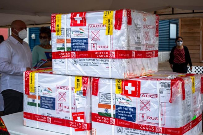 United Airlines Flight No. 1408 carrying the vaccines arrived on March 8,2020 at 2:00 p.m. at the Philip Goldson International Airport. Hon. Michel Chebat, the Minister of Health and Wellness, was joined by Dr. Deysi Mendez, Chief Executive Officer; Ambassador Amalia Mai, Chief Executive Officer in the Ministry of Foreign Affairs and Foreign Trade; Dr. Natalia Beer and Dr. Julio Sabido, technical advisors at the Ministry, to receive the donation on behalf of the people and Government of Belize.