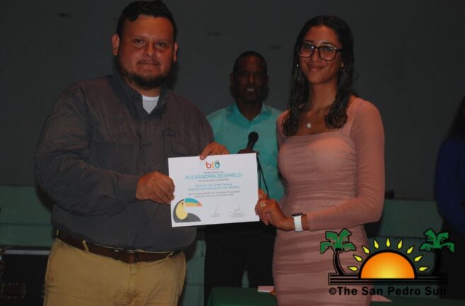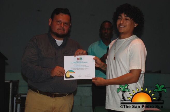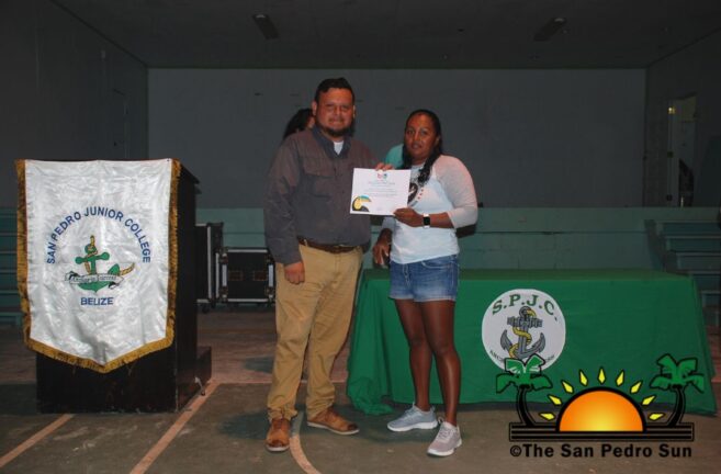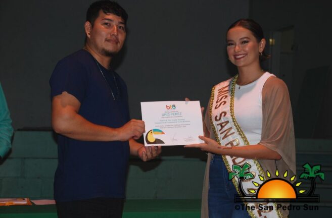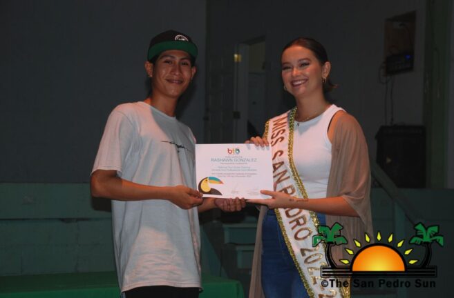 On Monday, November 21st, 38 islanders received their certification after completing tour guide training. A short ceremony acknowledging the recipients was held at the Angel Nuñez Auditorium, where they received their certificates from Belize Tourism Board‘s (BTB) representative Abil Castañeda and Miss San Pedro 2022-2023 Faith Edgar. The course was made possible through the San Pedro Junior College’s collaboration with instructors Philip ‘Billy’ Leslie and Josue Sosa.