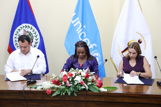 The MOU was signed by Dr. Osmond Martinez, Chief Executive Officer in the Ministry of Economic Development; Diana Castillo-Trejo, Director General of SIB; and Alison Parker, UNICEF Representative in Belize.