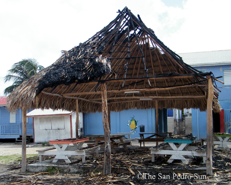 When the firefighters arrived, they found a palapa structure on fire on the school compound. The palapa, made of wood and thatch (palm leaves), had burned halfway through. The cause of the fire is unknown, but according to fire chief Jerome Garcia, their investigation continues.