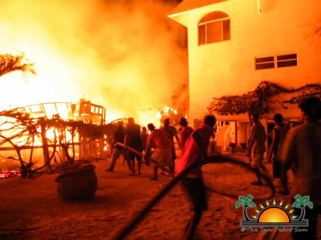 The San Pedro Fire Department responded shortly after receiving the call of the fire, but faced several challenges. A section of Coconut Drive, including access to Ramon’s Village is currently undergoing major street rehabilitation, and this caused limited access to the fire. Adding to the extenuating circumstances was low water pressure from the fire hydrants after electricity was cut off at 8:30PM. A message from Belize Electricity Limited sent out at 9PM indicated that an emergency power interruption was necessary “to mitigate damages from [the fire] within close proximity to [the] transmission line.”