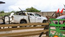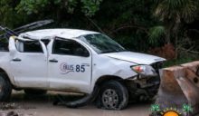 30-year-old Nolan Garbutt Jr, Belize Water Services (BWS) Assistant Supervisor, has reported to The San Pedro Police that on Wednesday, July 20th at around 10:30PM he suffered a car crash. He stated that he left Pedro’s Inn in a work issued white Toyota Hilux 4 door truck (Lp/# 32797, Model KUN25L-HRMDH Frame MROFR220800648564) heading home driving in a southerly direction. Garbutt went on to state that when reaching Sea Grape drive, he heard a loud bursting sound, and as a result, he lost control of the vehicle and flipped over. When he got out of the vehicle, he observed that the front and the back bumpers were broken, both left front and back wheels were punctured, the top was bent and the four doors were bent in.