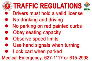 Several months ago, SPBTIA met with San Pedro Mayor Gualberto’ Wally’ Nuñez to discuss their idea of requiring all golf cart rental companies to display a sticker where the driver could easily read what traffic laws they must abide by. The Mayor fully supported the idea and not only agreed to pay for printing the stickers but would work with the Ministry of Transport to establish a mandate where all rental carts would be required to display the stickers prominently. SPBTIA designed the 6″ x 4″ vinyl sticker and, with the Mayors’ approval, printed 2,000 stickers. According to the Mayor, SPTC is now asking rental cart businesses to mount the stickers on the lower lefthand side of the windshield facing the driver and informing them that the stickers will soon be required as part of licensing rental carts.