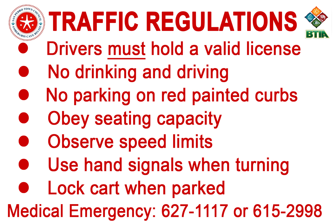 In response to the growing number of tourist-related accidents when driving rented golf carts, the San Pedro Belize Tourism Information Industry (SPBTIA) has partnered with the San Pedro Town Council (SPTC) in a campaign to inform drivers of the traffic laws on the island.