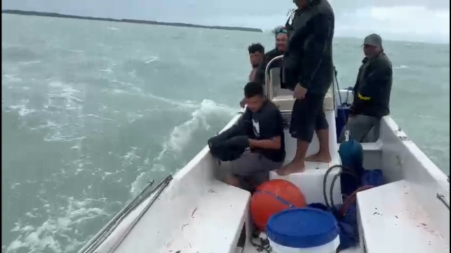 The crew returned the following day to set the safety buoys in a rough sea caused by a cold front.