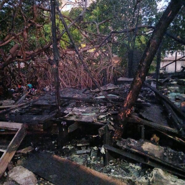 On Saturday, December 7th, a fire broke out on Barracuda Street, near the lagoon side of the Boca del Rio area, destroying a small wooden structure. The fire ignited just before 5PM and quickly consumed the building. Fortunately, no injuries were reported.