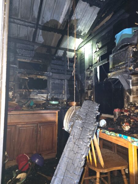 Fire officials reported that the blaze originated in a fire hearth behind an eight-foot-by-eight-foot wooden structure used as an outside kitchen. Investigators determined that the unattended hearth ignited a nearby shed, with the flames subsequently spreading to the main wooden structure and causing structural damage.