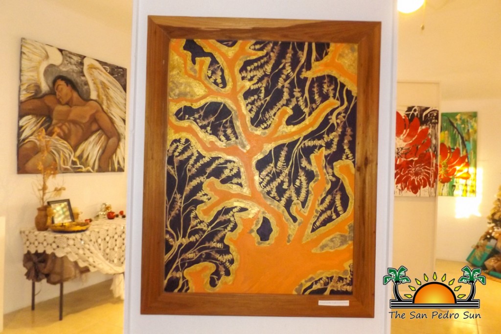 The San Pedro House of Culture (SPHC), under the auspices of The National Institute of Culture and History, has launched a new exhibition titled “Art Show and Reception.” The exhibition is the art work of Katrina Samuels Ancona, an artist originally from Greenwich Village in New York who has been on the island for over two decades. The art collection includes seventeen pieces of beautiful paintings on canvas, fish plates and colorful gold vases. It was officially launched on December 22nd just before the Christmas holidays.
