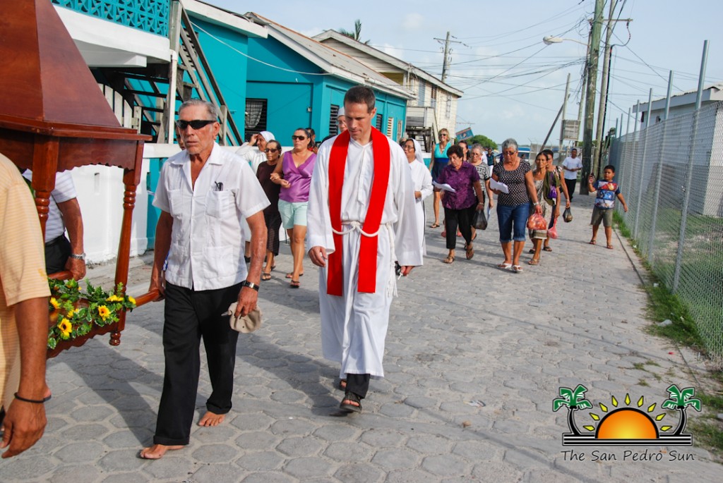 The actual day of the anniversary was on Wednesday, June 29th, and activities began as early as 4AM with a fishermen’s mass at the Catholic Church. At the mass, everyone gave thanks for all the blessings Saint Peter has given in the past year to San Pedro Town. The fishers ask for another prosperous fishing year. Following the mass, a fishermen’s breakfast was hosted at Severo Guerrero Sr. house. The original location was the Lions Den, however since it is being use as a Fire Victim Relief Centre, the venue for the breakfast was changed. Shortly after 6AM, all the fishermen gathered in front of the Central Park for a boat procession that began at the municipal pier. At the end of the procession all boats and fishermen were blessed.