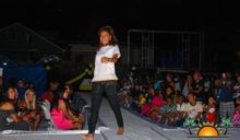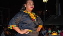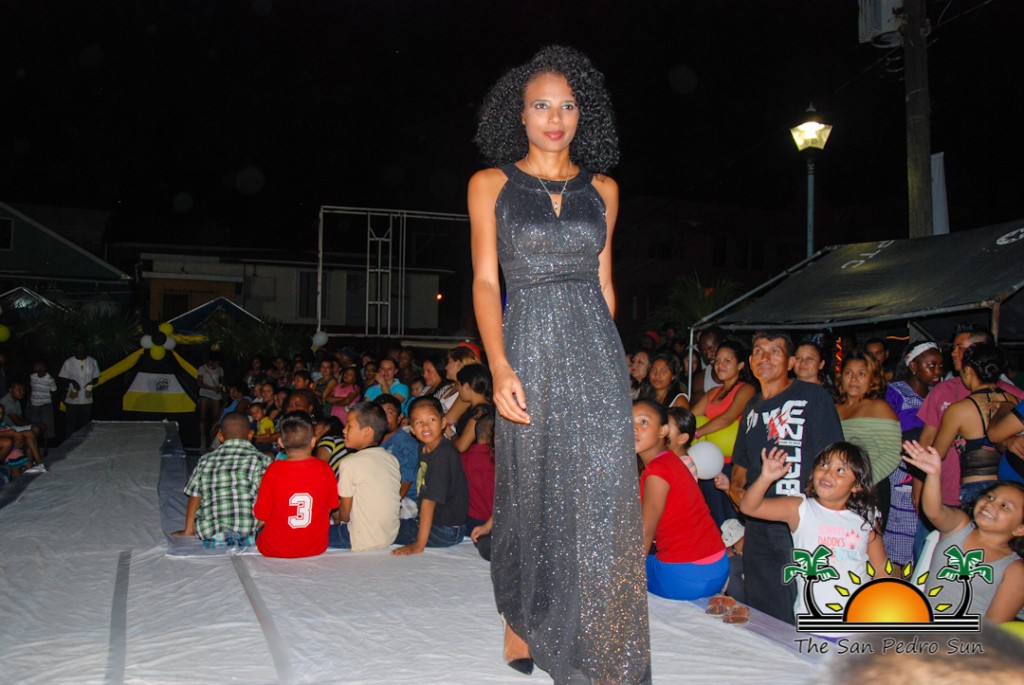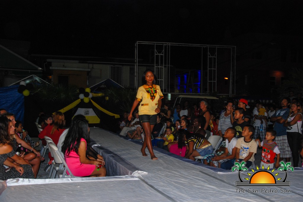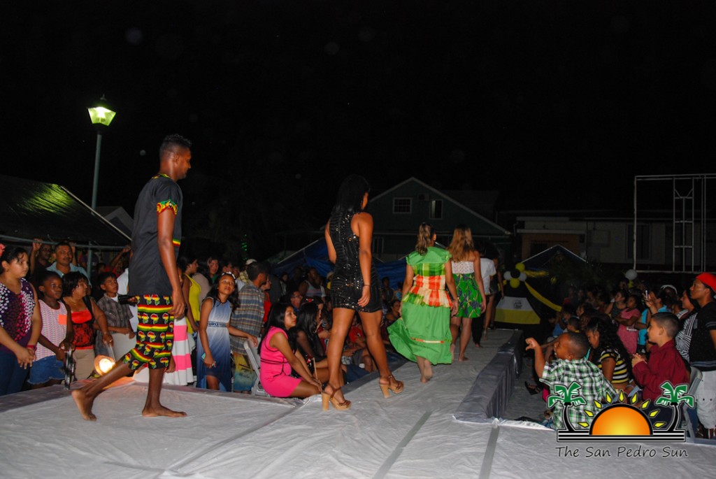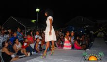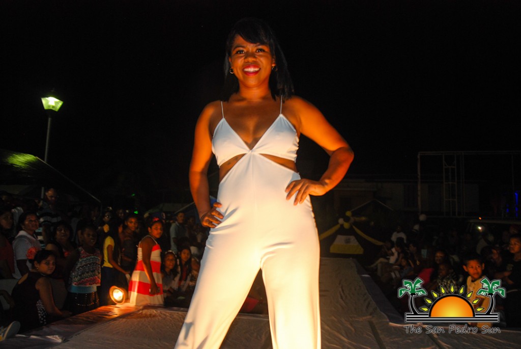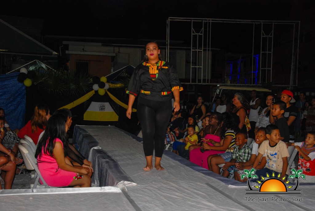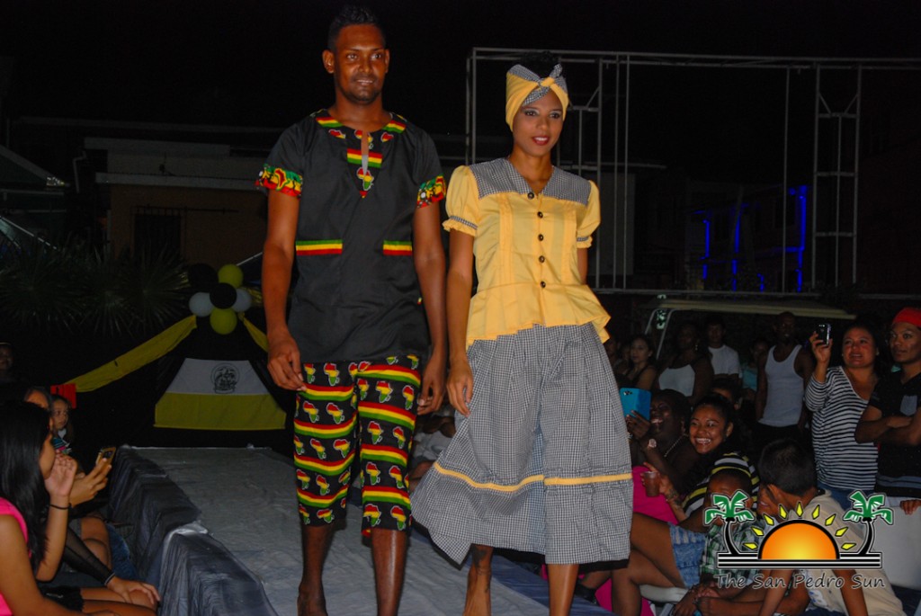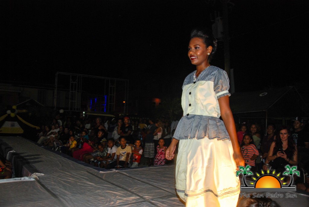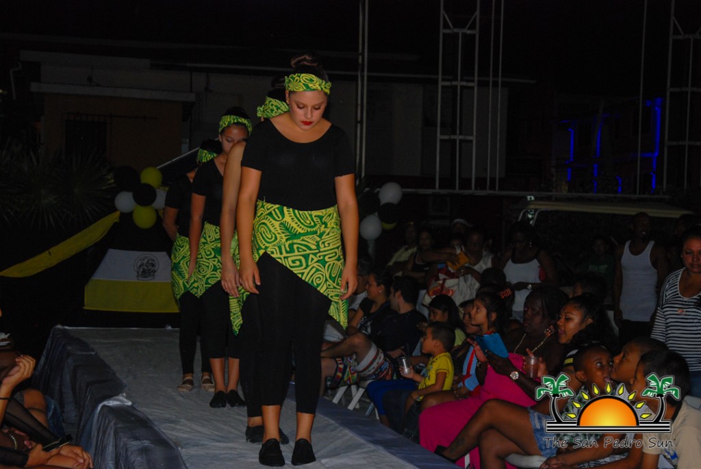 The last three clothing segments of the fashion show represented the three colors of the Garifuna flag: yellow, black, and white. Eduardo Aguilar, organizer of the fashion show, stated that he thought it was a great idea to incorporate the colors of the Garifuna flag into the fashion show. Although each color has various meanings, in this case, the black representing the hardship and struggle, yellow signifying hope and prosperity, and white indicating peace. Models showcased crisp white outfits first followed by sunny yellow outfits. Lastly, models sashayed in stunning black outfits that had the crowd cheering widely. All outfits can be purchased at Foreva Fancy Boutique on the corner of Coconut Drive and Tarpon Street in San Pedro Town.garifuna-fashion-show-9