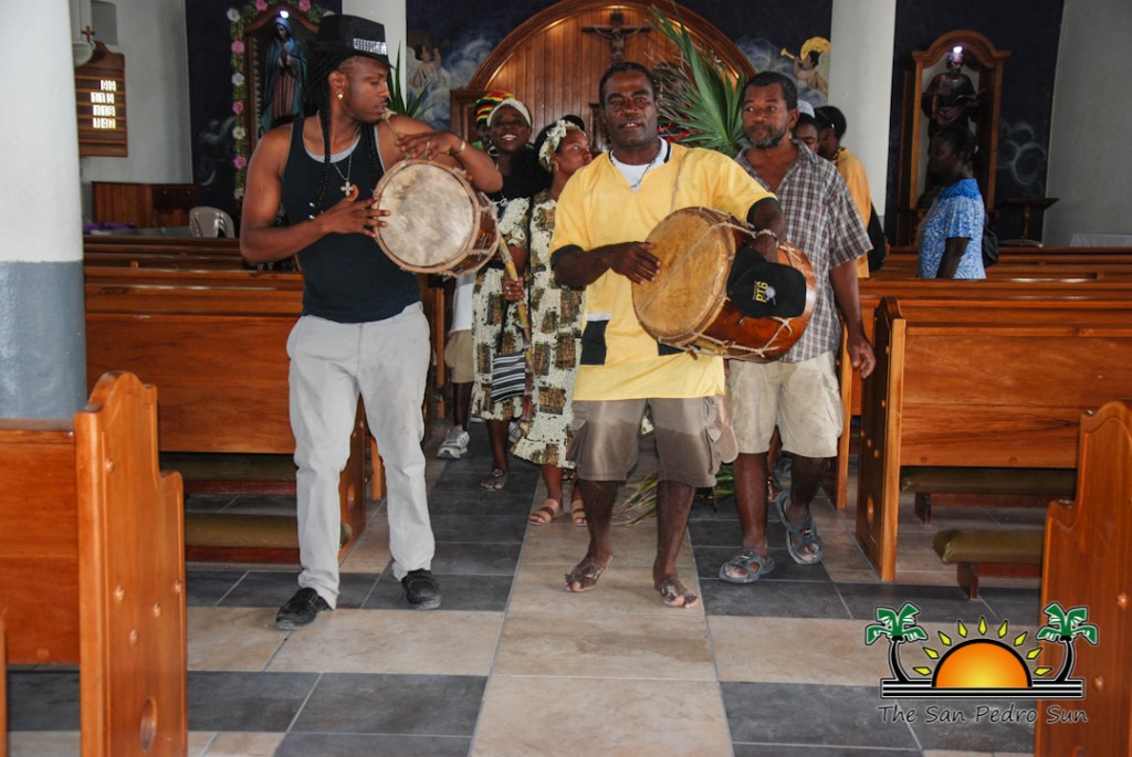 Early in the morning of the 19th, the traditional ‘Yurumei’ took place; this is the re-enactment of the arrival of the Garifuna to Belize. The singing and drumming of the group could be heard clearly as they reached the beach via boats. Upon disembarking, the group marched towards to the San Pedro Roman Catholic Church for a mass of blessing. Shortly after, a parade took place through the main streets of San Pedro town. Many residents came out of their homes to take a look as the group paraded by singing and drumming.