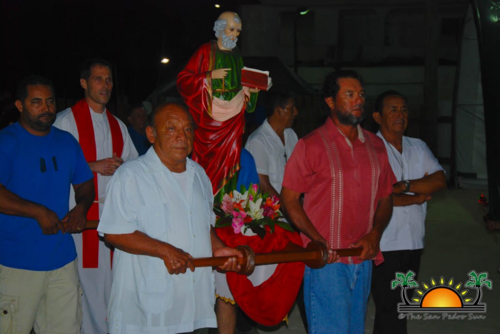 Early on the official day of Saint Peter, on Thursday, June 29th, the celebration continued with the traditional Misa de Pescadores (fishermen’s mass) at the San Pedro Roman Catholic Church at 4AM. At the mass, Saint Peter was thanked for all the blessings he has given to San Pedro Town, and fishermen asked for another prosperous fishing year. Following the mass, The San Pedro Town Council hosted a fishermen’s breakfast at the Lions Den. Later on at 6AM, all fishermen gathered in front of the Central Park for a boat procession. As every year, leading the procession was the vessel with Saint Peter mounted on the bow of the boat. When the procession was over, the boats and the fishermen were blessed by Catholic Priest Scott Giuliani.