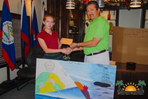 On Tuesday, December 5th, Mayor Daniel Guerrero welcomed to his office the top three winners of the San Pedro Town Council (SPTC) poster competition. The competition was organized among the primary schools of the island. The students’ posters were showcased during Township Day on Monday, November 27th. After reviewing dozens of submissions, the team at the SPTC selected the top three posters crafted by students.