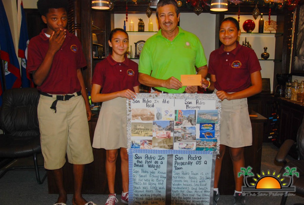 On Tuesday, December 5th, Mayor Daniel Guerrero welcomed to his office the top three winners of the San Pedro Town Council (SPTC) poster competition. The competition was organized among the primary schools of the island. The students’ posters were showcased during Township Day on Monday, November 27th. After reviewing dozens of submissions, the team at the SPTC selected the top three posters crafted by students.