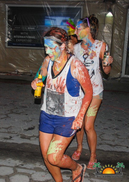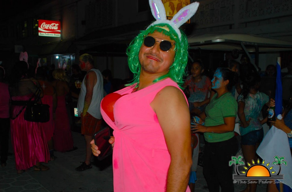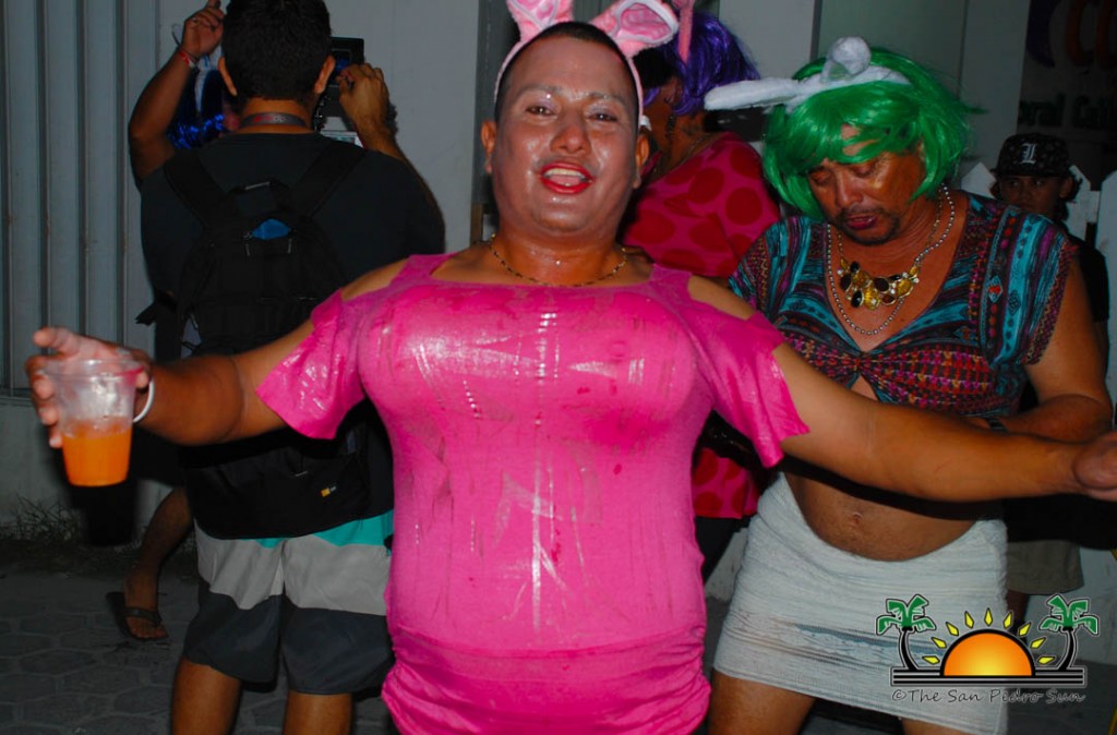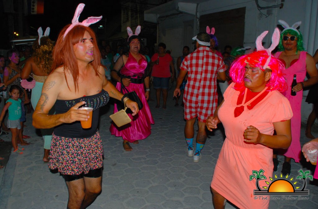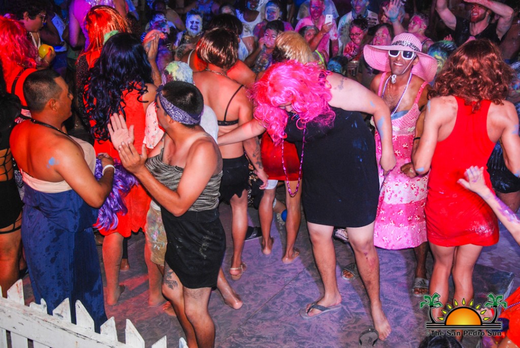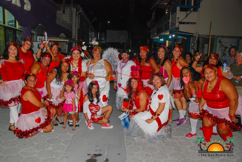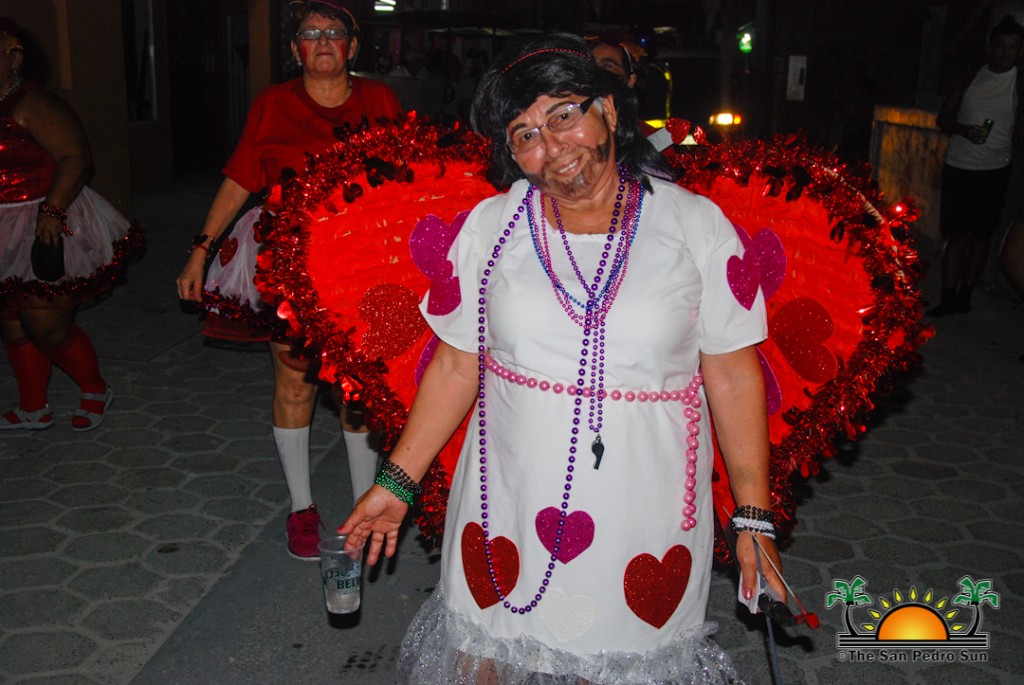 The festivities continued on Monday, February 12th with another round of comparsas presentations and of course more painting through the streets of downtown San Pedro after 4PM. Another block party was in full swing at the Central Park starting with lots of foam and painting. Meanwhile on Pescador Drive, ACES did a parody on U.S President Donald Trump on the immigration issues. Ancona’s comparsa took on to the street in a Cupid and Valentine’s Day theme. Their elaborate costumes drew loud cheers from the spectators, who followed the dancing all the way to Barrier Reef Drive. The Barbies were right behind Ancona’s, delighting their fans with a parody of ‘The Queen of the Bay’ pageant. A controversial incident when former Belize City Mayor Zenaida Moya, did not accept that the representative from the Stann Creek District had won the crown. Moya demanded that the representative from Orange Walk District, was the winner.