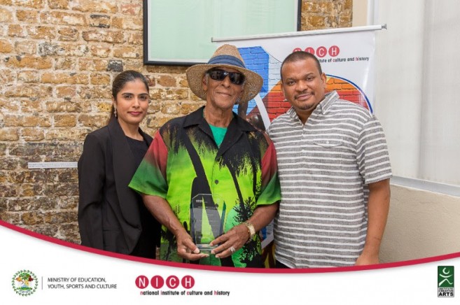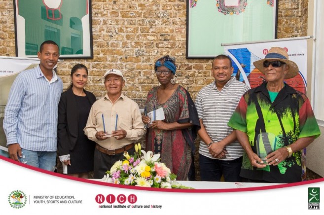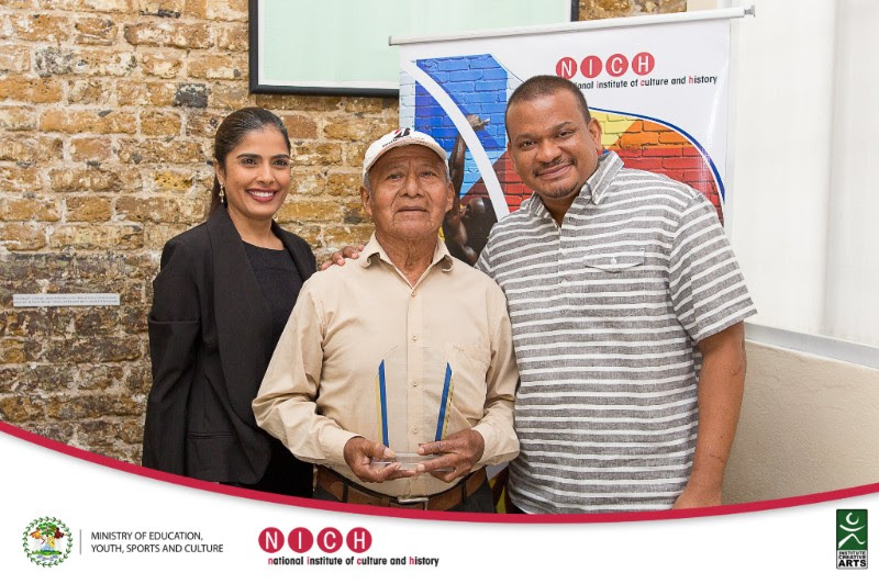 Honourable Deputy Prime Minister Patrick Faber, Minister with the portfolio of Education, Youth, Sports and Culture along with Ms. Sapna Budhrani, President of the National Institute of Culture and History (NICH) today presented Mr. Florencio Mes, Ms. Myrna Manzanares and Gerald “Lord” Rhaburn with the title of Artist Emeritus at the Museum of Belize.