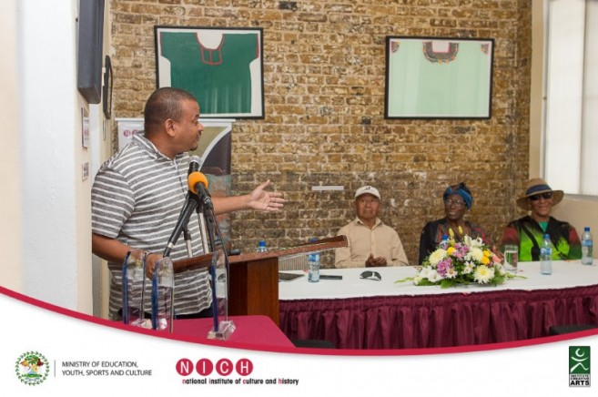 Ms. Budhrani, President of NICH, welcomed all to the ceremony sharing that, “Belize is blessed with diversity, nature, ethnicities and cultural heroes; living, inspiring individuals who have made us dance, laugh and appreciate.” She recounted her personal experiences of listening to Mr. Mes’s harp music and how the soothing music helped to strengthen her concentration and focus, her appreciation of Ms. Manzanares’ writings of the Belizean Creole Culture that are shared locally and internationally, and the collective Belizean experience of hearing and singing along with such iconic songs as “If you bawn deh, you bawn deh”, “Pump it up”, “Gumagarugu Water” and many other of Lord Rhaburn’s many hits. Ms. Budhrani ended by saying that, “It is a privilege for me to be a part of this event and to be able to recognize the works of our elders and icons of culture.”