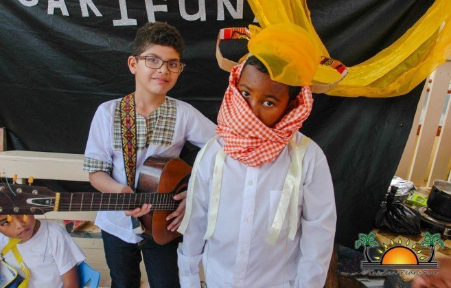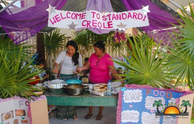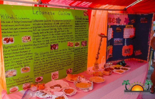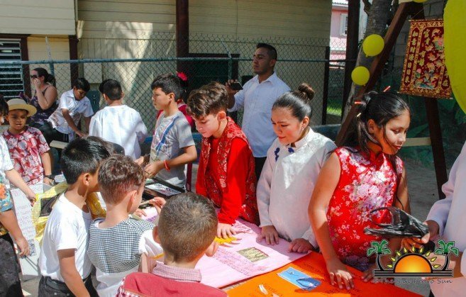 From 10AM to 1PM, many island parents and guests made it to the school campus to observe a display of cultural booths featuring the many ethnic groups of Belize such as the Chinese, Maya, Garifuna, Mestizo, Lebanese and Creole. Each booth displayed information, traditional dishes, and students in the attire of their designated ethnic group.