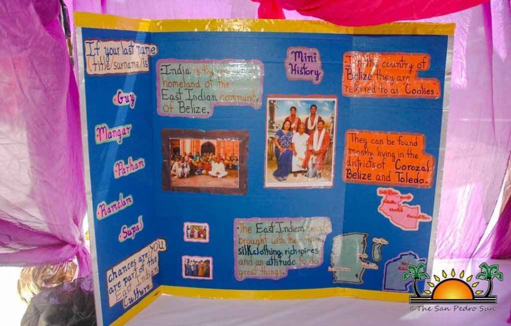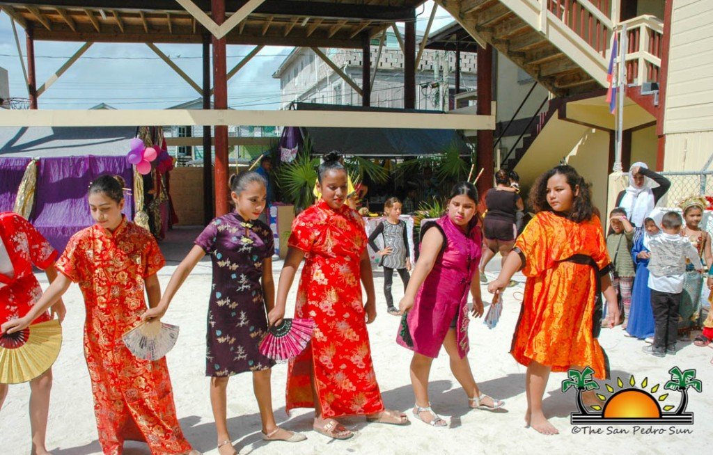 From 10AM to 1PM, many island parents and guests made it to the school campus to observe a display of cultural booths featuring the many ethnic groups of Belize such as the Chinese, Maya, Garifuna, Mestizo, Lebanese and Creole. Each booth displayed information, traditional dishes, and students in the attire of their designated ethnic group.