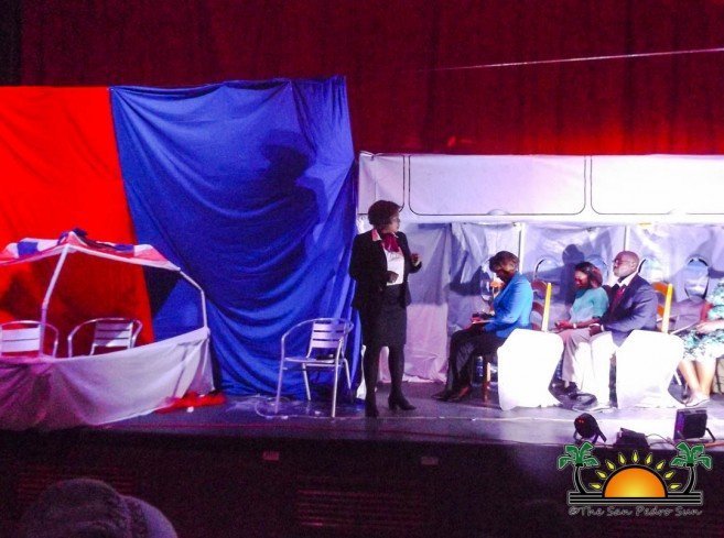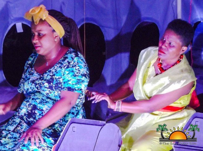 Written by Julie-Ann Ellis Bradley, the play began shortly after 7PM, with passengers boarding ‘Kruffy Airlines’ flight from Belize to Miami, Florida in the United States. The show depicted a flight deck full of different characters, preparing to take off for their international flight. The interaction depicted a demanding and know-it-all travel writer, a gentleman in a suit involved in human trafficking, a pregnant woman hoping to give birth on American soil and a kruffiest of the kruffy traveler with all sorts of luggage packed with several food rations, including fry fish.