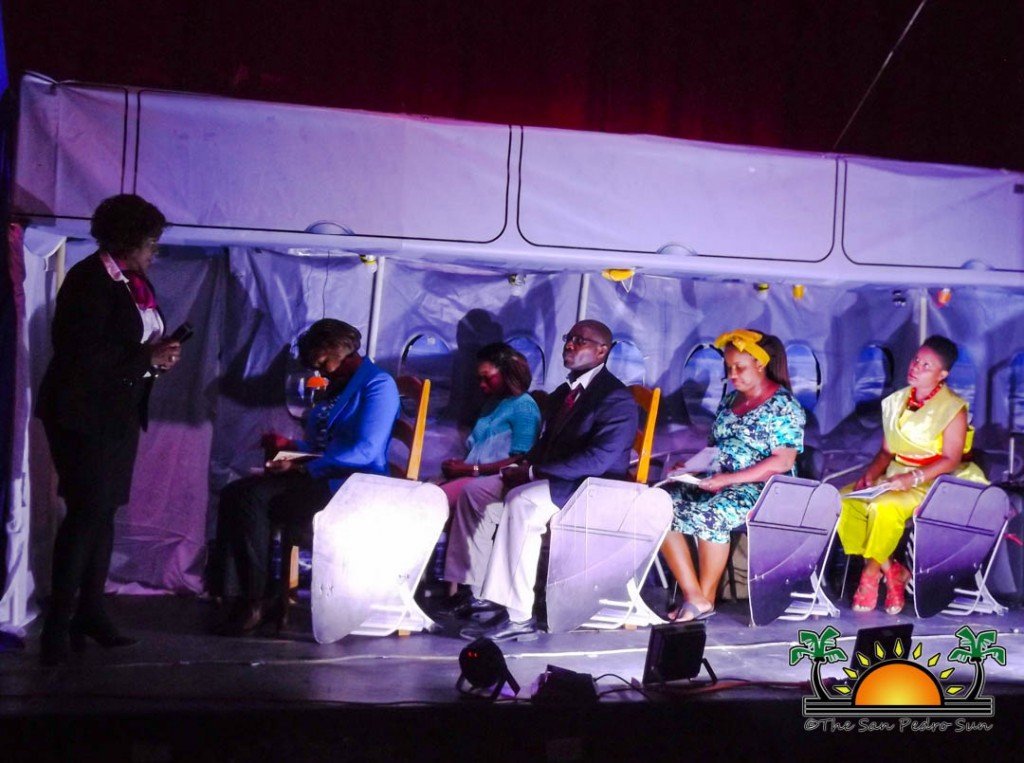 Written by Julie-Ann Ellis Bradley, the play began shortly after 7PM, with passengers boarding ‘Kruffy Airlines’ flight from Belize to Miami, Florida in the United States. The show depicted a flight deck full of different characters, preparing to take off for their international flight. The interaction depicted a demanding and know-it-all travel writer, a gentleman in a suit involved in human trafficking, a pregnant woman hoping to give birth on American soil and a kruffiest of the kruffy traveler with all sorts of luggage packed with several food rations, including fry fish.