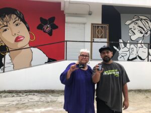 The two murals paying tribute to Selena and 2Pac are on a building owned by San Pedro’s well-known philanthropists and entrepreneurs, Kelly McDermott Kanabar and Mukul Kanabar. The Kanabars are actually very good friends with the Romans and have been planning to host the artists on the island for quite some time. Mukul said the mural images were chosen to promote peace, happiness, and hopefully serve as inspiration for aspiring artists. The subject matters are beloved to San Pedranos. In fact, 2Pac visited Ambergris Caye in the 1990s along with other famous entertainers like Snoop Dogg. Although her life was tragically cut short, Selena’s timeless music is beloved on the island. That love was felt when her brother A.B Quintanilla III and his band the Kumbia Kings, performed on the island at the annual International Costa Maya Festival in August of 2005.