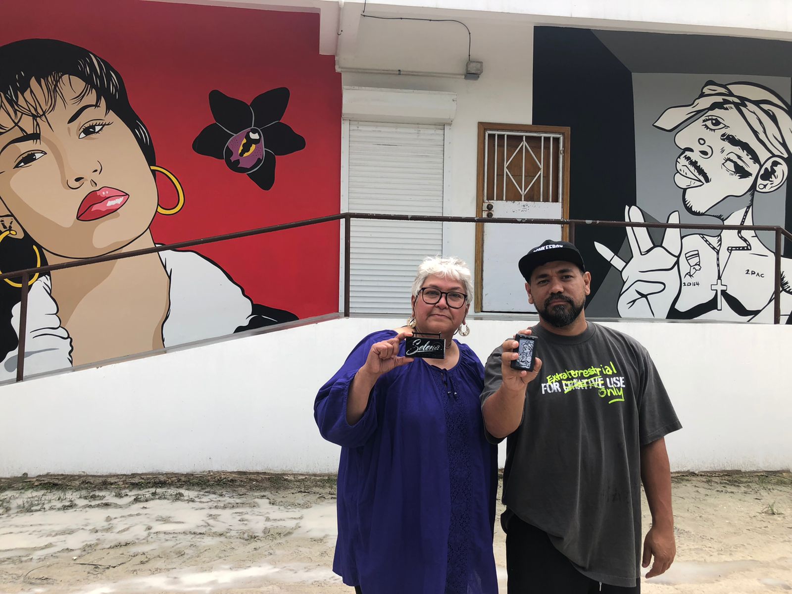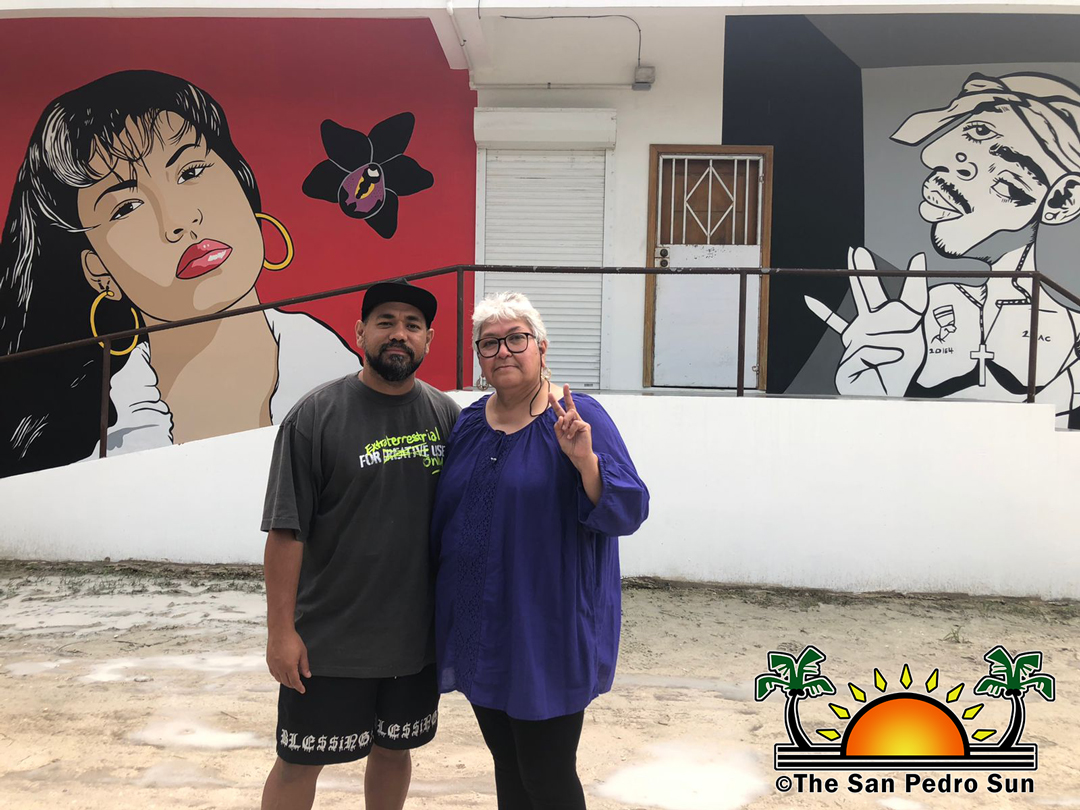 A mother-son duo out of Houston, Texas have gifted San Pedro Town, Ambergris Caye with two colorful and inspiring murals. The late ‘Queen of Tejano Music’ Selena, and American rapper and actor Tupac (2Pac) Amaru Shakur are depicted Picasso-style along the wall of a warehouse building on Seagrape Drive. Artists Alex Roman Jr., and his mother Sylvia Roman, artistically known as Donkeeboy and Donkeemom, said their collaboration evolved out of similar interests and encouraging each other to continue doing what they love the most-paint, paint, and paint.