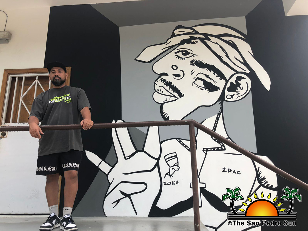 The murals took several days to complete, and although there were a few hiccups along the way, like unpredictable weather conditions, Alex and his mother Sylvia managed to complete the project one day before their return to Houston on Sunday, November 21st. Alex told The San Pedro Sun about his painting portraying the late 2Pac. He explained that it is a combination of two great artists: 2Pac and Pablo Picasso. Alex calls his painting style a “remix” – in this case, 2Pac in the style of Picasso, which makes the end product a ‘PACasso.’ “I wanted to put both of them on the highest pedestal,” said Alex. “When I heard that 2Pac is big here in Belize, for me was like the perfect thing because I already had this piece I had been working on forever and it just felt like the right thing to do and paint it here,” Alex said he started getting into painting from when he was a kid, and by the age of 13, he was already selling his works. Alex felt a passion for painting after growing up looking at his mother’s paintings. “It’s something she instilled me from since I was a kid,” he said. Alex added that for the past 10 years, he has been working as an artist full time.