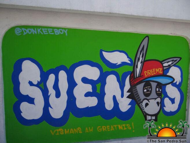 The other artistic work done by Alex is the word ‘Sueños,’ meaning dreams. It features the face of a donkey with a cap and a sleepy but determined stare. Alex’s ‘Sueños’ work is in tandem with a project dubbed The Sueños Group. According to Alex, the donkey face in the painting depicts the need to never give up on dreams, to be stubborn, and work hard for your goals.