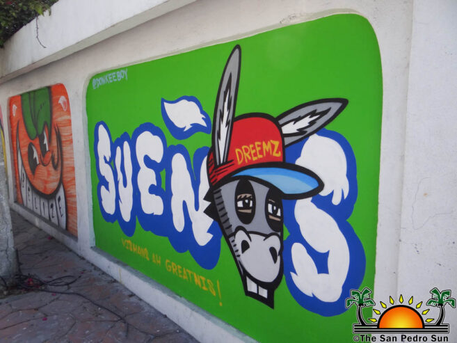 These two murals join others in the same area where the mother and son team previously collaborated. The other murals show Belize’s cultural ambassador, the late Andy Palacio, Belize’s national bird, the Keel-Billed Toucan, and a happy smiley face depicting the name BELIZE.