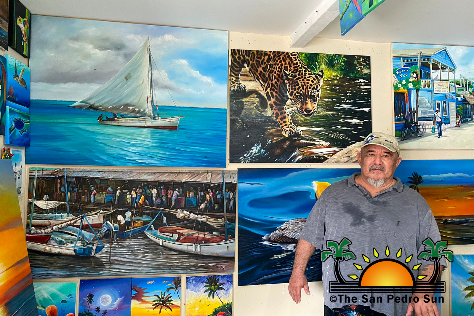 BTB launched the competition during August and September when local artists were invited to submit paintings highlighting this year’s theme for World Tourism Day, “Tourism and Green Investments.” Papo competed among 40 other artists who participated from across the country. A total of 19 of the submissions were shortlisted. He shared with The San Pedro Sun that those near him and his family encouraged him to participate in the competition. The island artist said he spent a few weeks thinking about what to paint. When he had the sketches ready, Papo Alamilla said it only took him three days to complete his masterpiece. “I had in mind to highlight our hard-working people like the fishermen, the beauty of our country and culture,” said Alamilla.