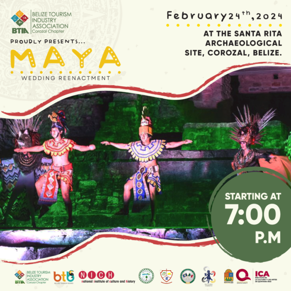 We cannot erase the past and we are not here to argue against other versions. Our event is intended to highlight and appreciate the beauty, power, and grace of the Maya Mestizo People – a people whose complex history taught them to be STRONG. The Maya Reenactment Wedding is a signature event for BTIA Corozal Chapter and one which has been developed in partnership with the Corozal Town Council, NICH and the BTB. It aims to highlight the local culture in Corozal further showcasing the touristic attributes the district has to offer. The event will be celebrated on February 24th, 2024.