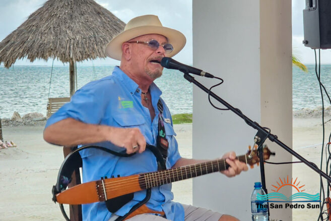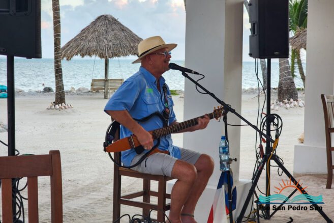 In an interview at The Opus Ocean Grille, Kelly McGuire shared, “I think I’ve been coming here for probably 20 years. The first time I was invited down to play at Fido’s (now Black Pearl), I didn’t even know where San Pedro, Belize, and Ambergris Caye were. I had a beautiful week, and on the last day, while sitting on the beach before flying back to Houston, [Texas, USA], I was trying to write something inspirational. That’s when I wrote my very first song about Belize, ‘Boat in Belize.’ It was about Captain Rick, who moved from Colorado and had a catamaran called ‘Cat Kandu’ for charter. I kept coming back because I met Joe and Rhonda Lawrence, who built Pelican Reef and Athens Gate, now known as Lighthouse Beach Villas. I started staying with them on my second trip and have been with them ever since. I come down every year in February for my ‘Birthday in Belize Bash.’”