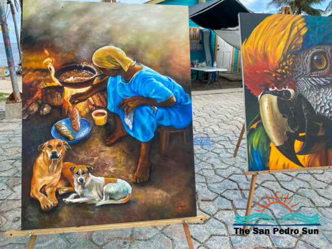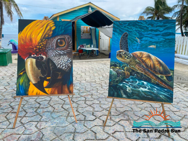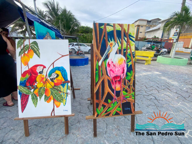 The showcased artworks captured the island’s natural beauty, wildlife, and heritage. Several paintings depicted San Pedro’s early days as a fishing village, while others celebrated its vibrant marine life, tropical scenery, and the connection between tourism and the fishing industry.