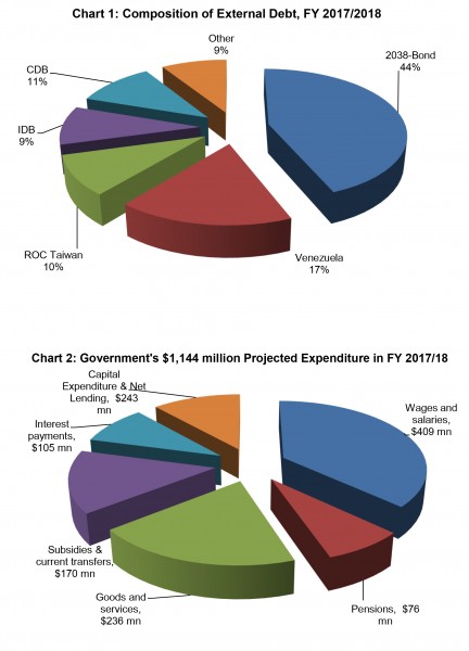 The leader of the Government then spoke about on the debts that require foreign currency repayments. $1.055 billion is currently owed to commercial bondholders, $400 million to the Petro Caribe Loan Program and another $305.3 million to the Caribbean Development Bank (CDB). There is also a $242 million owed to Taiwan and $227 million to the Inter-American Development Bank. “This translates to 41% or 4 of every 10 dollars of the national debt being payable to these concessionary lenders,” explained Barrow. He further pointed out that some 40% of the country’s domestic debt is currently held by the commercial banks, 38% by CDB and 22% to other creditors. According to the presentation, a quarter of this debt consists of short-term Treasury Bills, and 62% of which is longer-term Treasury Notes.