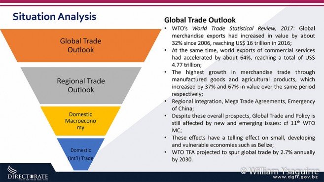 As the policy was developed, it was found that Belize’s exports to CARICOM have not lived up to expectations, and intra-regional trade has not grown, despite the tariff liberalization, national trade adviser Terrence Simfukwe noted; as he presented an overview of the policy. The trade in services is rising but is largely undocumented because there is no administrative and monitoring mechanism. Infrastructure remains inadequate and is still developing; the industrial base is low or totally absent.