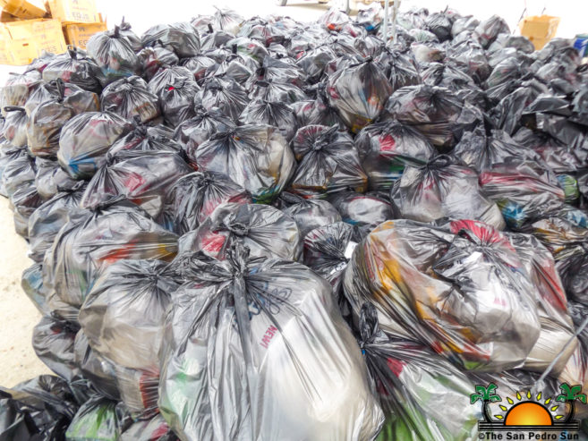 From 9AM, hundreds of islanders convened outside the sporting arena waiting for their turn to get inside and receive a bag full of groceries. The lines were long, and members of the San Pedro Traffic Department and the police tried their best to enforce social distancing. Each person/family had previously been issued a ticket either by the SPTC or the Living Word Church, after being identified as someone in need.