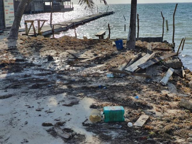 Shortly after sunset on Wednesday, San Pedro experienced a couple minutes of intense rain, and afterwards a steady flow of weak winds blew for several hours. The beach areas experienced some agitated wave action, but there didn’t seem to be a strong storm surge. The wave action washed plenty of debris ashore, consisting of some Sargassum, sea grass and rubbish. Islanders stayed put and observed the developments of the hurricane as it approached the country and made landfall.