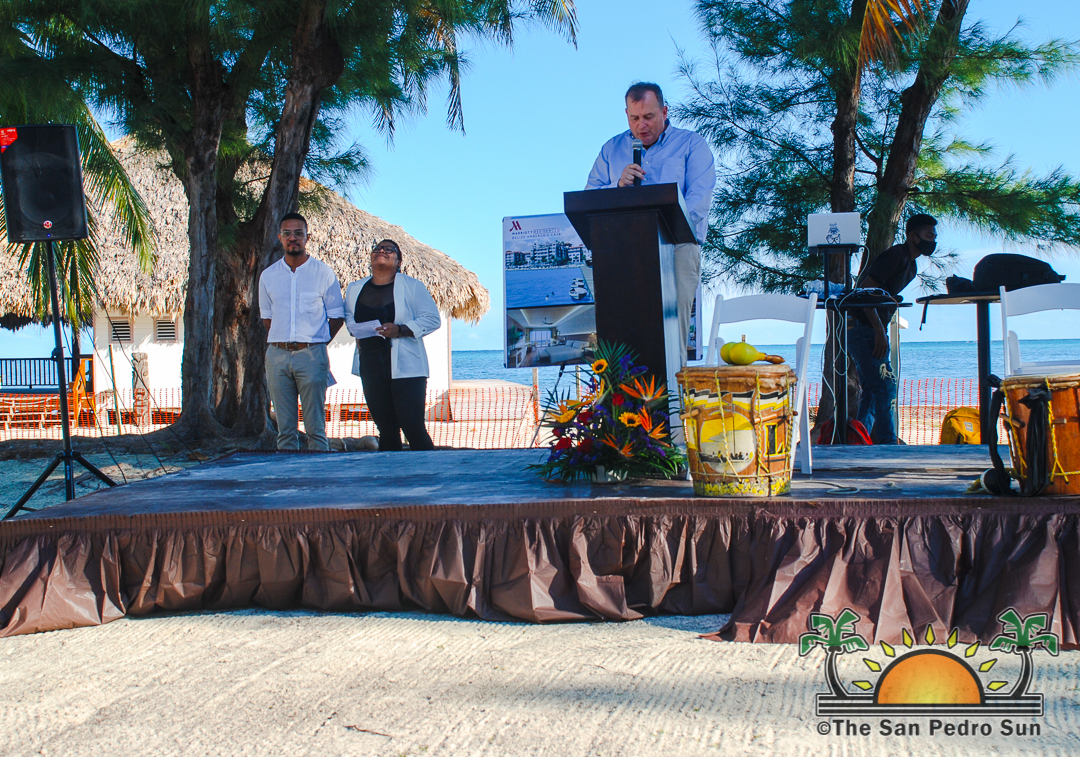 On behalf of Mayor Gualberto ‘Wally’ Nuñez, Councilor Marina Kay highlighted the reality on the island when it comes to residents lacking employment opportunities. She said that islanders are still working at 50% wage or only half-time. “I know that the project is going to open so many doors here in our community. Immediately I can see through the construction that so many residents will get the opportunity to go back to work,” said Kay. The sentiments were shared by the Chairman at the Belize Airports Authority, Ricardo Martin, representing Area Representative, the Honourable Andre Perez, who could not attend the event. Martin said this new hotel project would alleviate the unemployment rate on the island and improve the level of hospitality services on Ambergris Caye.