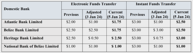 Even though PD No. 7 will not be implemented as previously scheduled, CCB is proceeding with the changes to EFT and IFT. Since January 3, 2024, CCB no longer charges domestic banks, except the National Bank of Belize Limited, for EFTs and IFTs processed through the APSSS. The new charges are as follows: