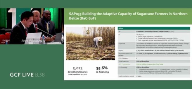 Press Release – Belmopan, Belize – March 5, 2024 – The Ministry of Economic Development, as the National Designated Authority to the Green Climate Fund (GCF), received approval for Belize’s largest climate change project entitled, “Building the Adaptive Capacity of Sugarcane Farmers in Northern Belize”. The grant totals BZ$77,682,600, with funding of BZ$50 million from GCF and co-financing from project partners at BZ$27.6 million and BZ$30,000 from the Government of Belize.