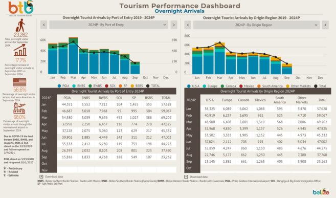 According to the Belize Tourism Board (BTB), overnight tourist arrivals in September 2024 totaled 23,262 visitors, marking the lowest figure of the year thus far. In comparison, July and August 2024 numbers were slightly higher, with 44,275 and 37,760 visitors, respectively. Although these overnight tourist arrival figures remain significantly lower than those recorded during the “high season” months, it is noteworthy that there was still a 17% increase in overnight visitor arrivals from September 2023 to September 2024.