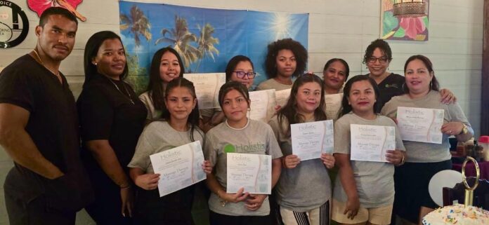 On April 16th, the Holistic School of Massage & Spa Therapy celebrated the graduation of nine young women from San Pedro Town at La Divina Restaurant. The event marked the completion of a four-month training program designed to equip participants with professional skills for Belize’s growing wellness industry. The ceremony took place on the evening of Thursday, April 23rd, with graduates receiving certificates after completing a comprehensive curriculum.