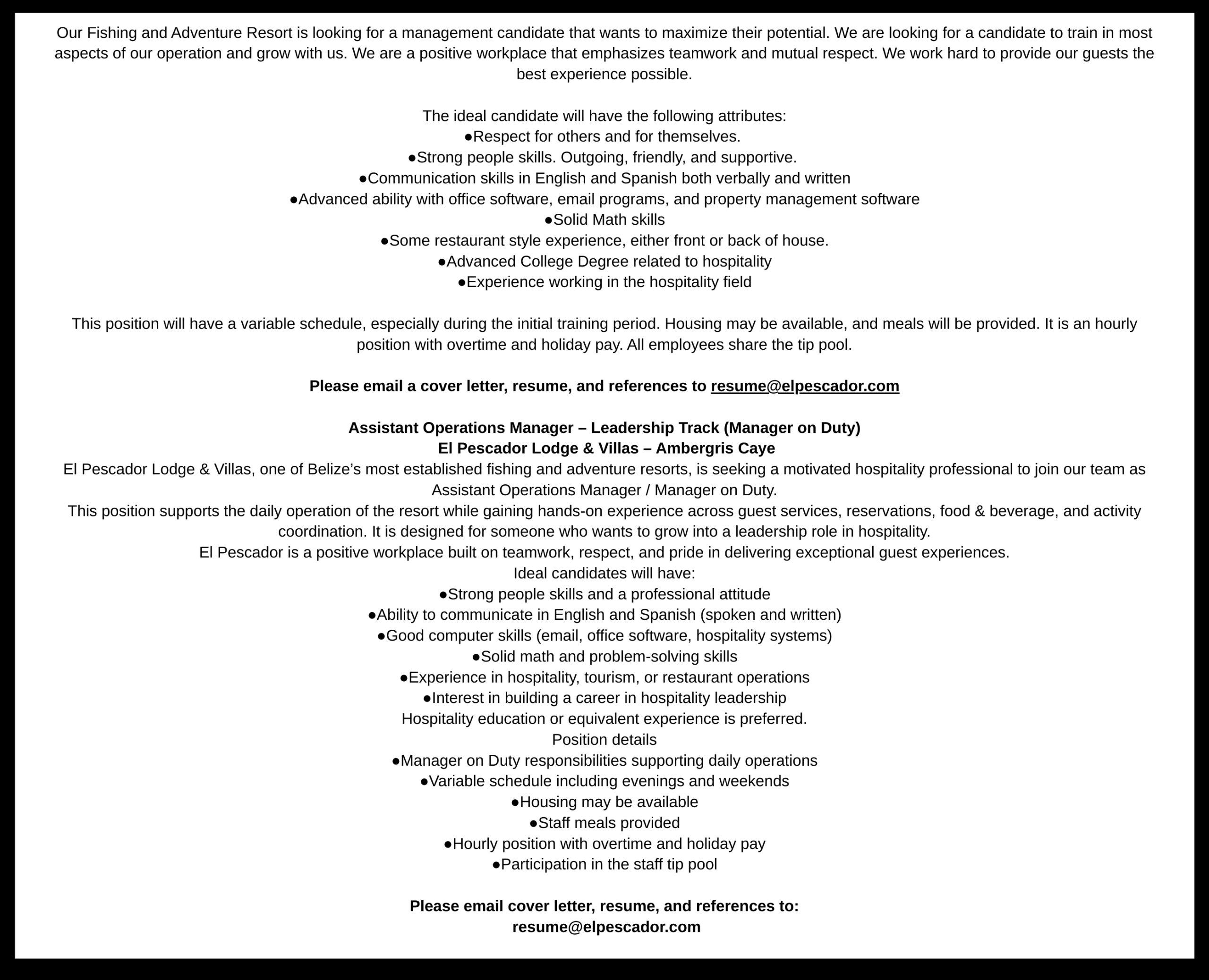 FOR RENT: Long Term, 2 Bedroom Condo, Fully Furnished secure top floor,2 bldgs. north of Ramon’s Village, rear unit beach front, walking distance to town across from Carlo and Ernie’s Runway Bar, beach and sundeck access, 1750BZ/mth includes pressurized water. [email protected]