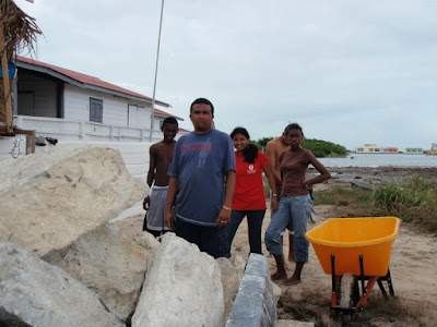His generosity has already inspired Mr. Martin Martinez of Martin’s Boat Service to reduce his regular price of a boat load of rock and to volunteer his time in positioning the rocks. Mr. Martinez is shown above with several students from Holy Cross who are assisting in this project. In addition developer, Mr. Jeff Pierce has promised to fill three acres of School property as soon as the rocks are in place.